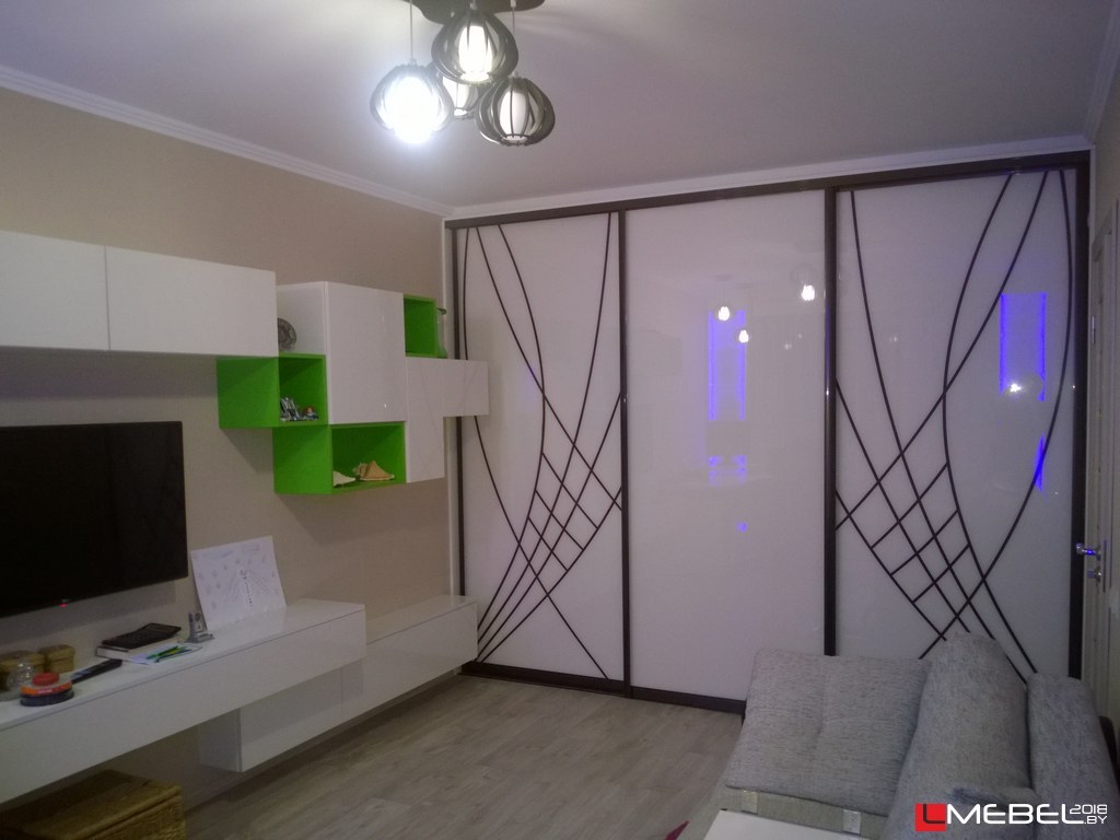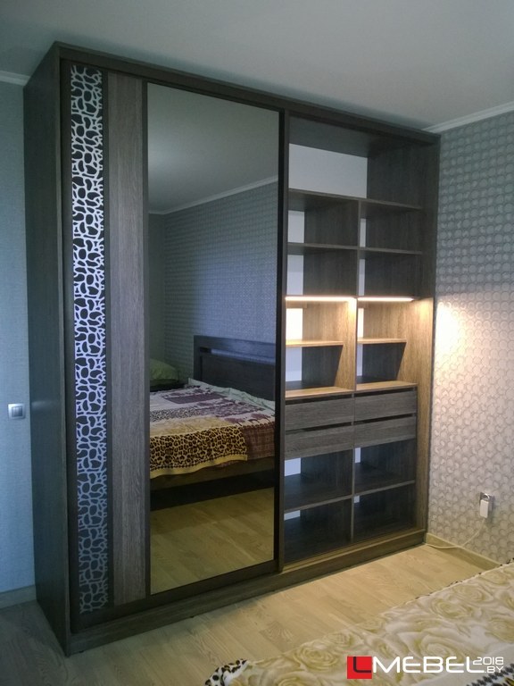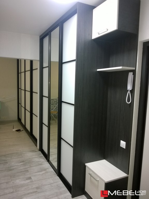 Длина 3 м/п. Глубина 60см. Встроенного типа. Двери купе ЛАКОБЕЛЬ/КОЖ.ЗАМ.
