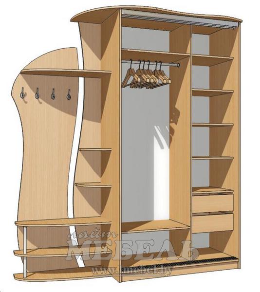 Длина 3 м/п. Глубина 60см. Встроенного типа. Двери купе ЛАКОБЕЛЬ/КОЖ.ЗАМ.