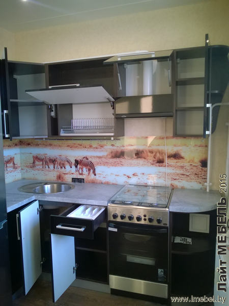 Кухня с пластиковыми фасадами. Скинали ФОТОПЕЧАТЬ. 3 м/п. Описание изделия: