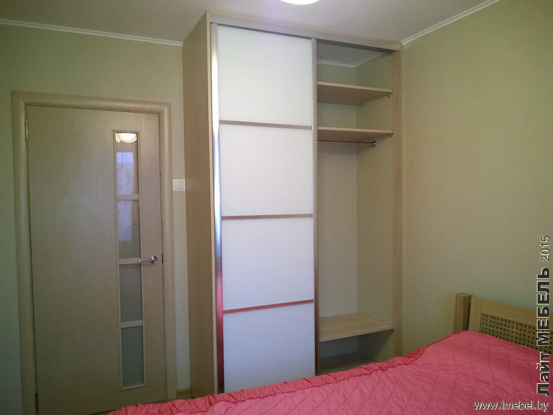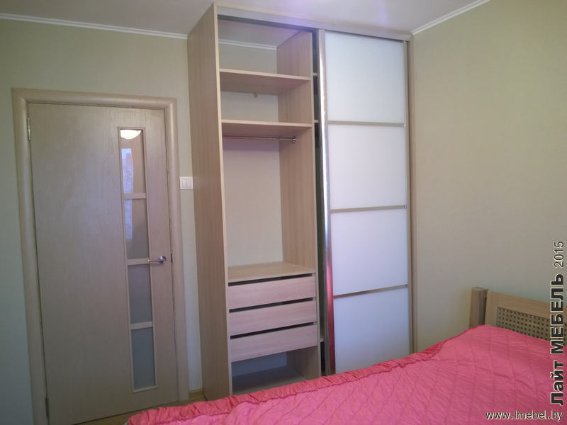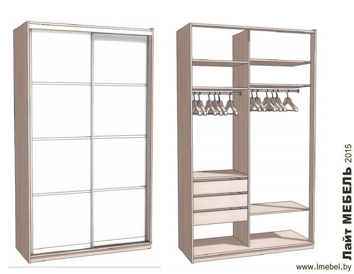Длина 1,45 м/п. Глубина 60см. (Встроенного типа) Двери купе ЛАКОБЕЛЬ. Описание изделия: 1. Материал: ДСП ламинированное EGGER 18мм «Акация лэйклэнд светлая H1277 ST9». Торцы оклеены кромкой ПВХ в цвет корпуса. Шкафы купе в Гомеле под заказ. +375 (29) 376-82-33