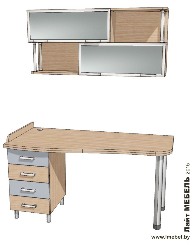 Цвет: Дуб феррара светлый. Размер: 1,9х1,3м/п. Описание изделия: 1. Материал: ДСПл EGGER 18мм Дуб феррара светлый. в сочетании с «Алюминий» Лицевые торцы оклеены кромкой ПВХ в цвет корпуса.