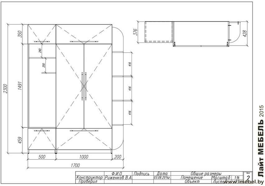 Прихожая. Длина: 1700мм. Глубина шкафа 450 см. Боковые полки 200мм. Левая глубина ящиков: 350мм. Высота: 2300мм Описание изделия: