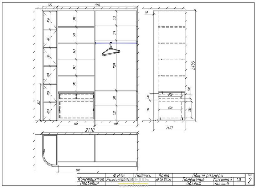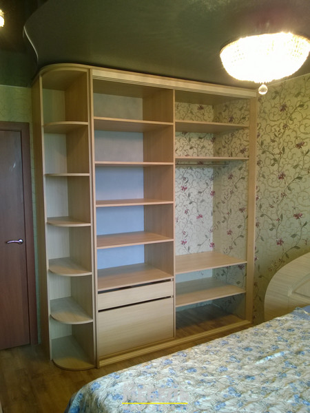 Длина 2.1 м/п. (Встроенного типа) Глубина шкафа-купе 70см. Описание изделия: 1. Материал: ДСПл EGGER 18мм Дуб феррара светлый . Лицевые торцы оклеены кромкой ПВХ в цвет корпуса.