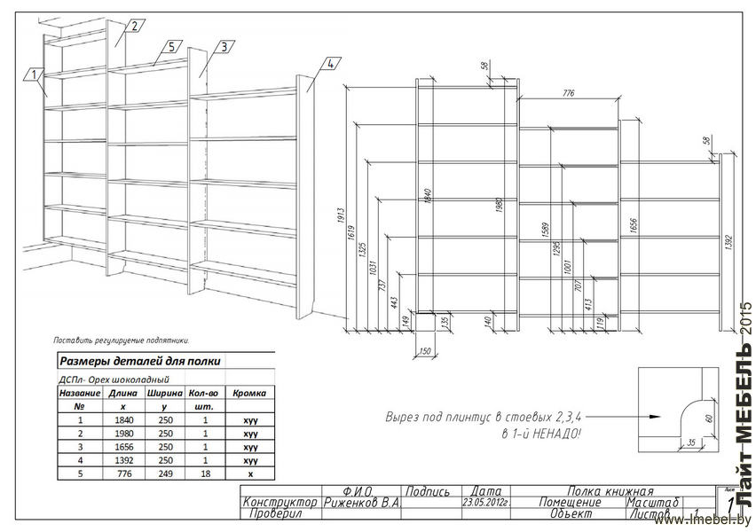 Полки для книг. Длина 2,4 х 0,25 м. Высота 1,9 м. Описание изделия: