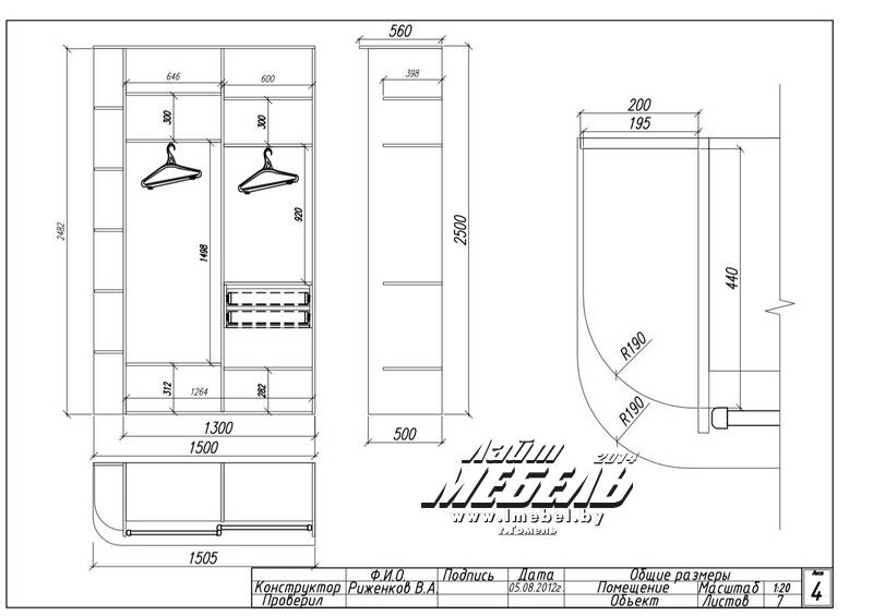 Шкаф-Купе 1,5 м. Встроенного типа. Боковые полки 20 см. Глубина шкафа-купе 50 см. Описание изделия: