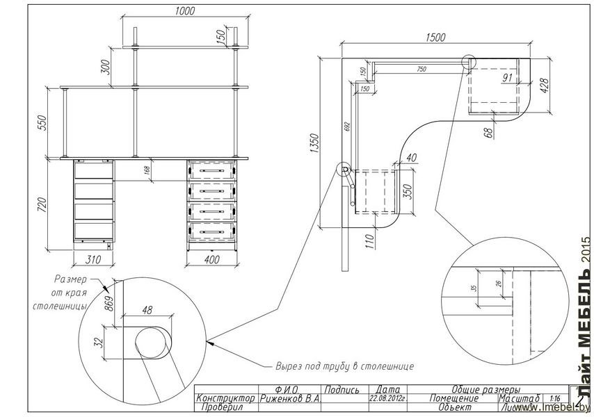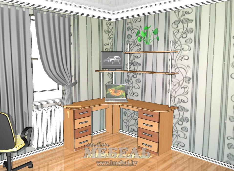 Угловой стол с полками. 1,5х1,35м. Цвет: Бук и орех Описание изделия: