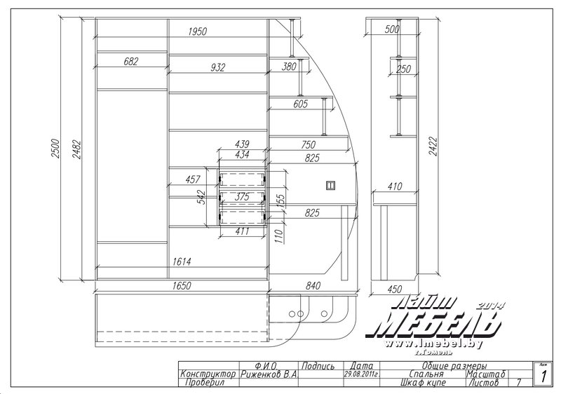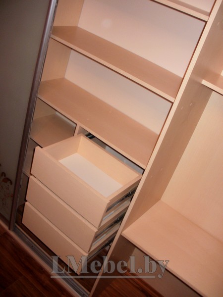 Шкаф-купе 2,5 м. Встроенного типа. Боковые полки 85 см. Глубина шкафа-купе 45 см. Описание изделия: