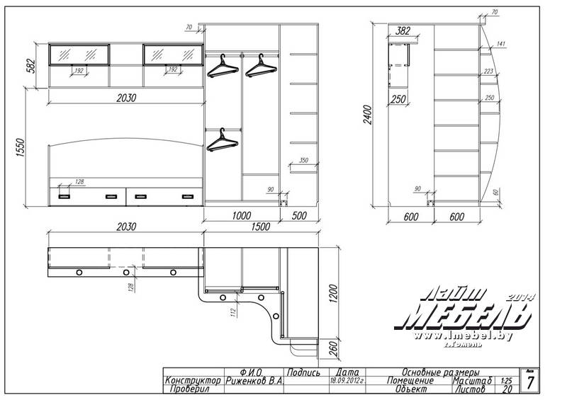 Шкаф-Купе угловой 2,5 х 1,5 м. Встроенного типа. Глубина шкафа-купе 60 см. Описание изделия: