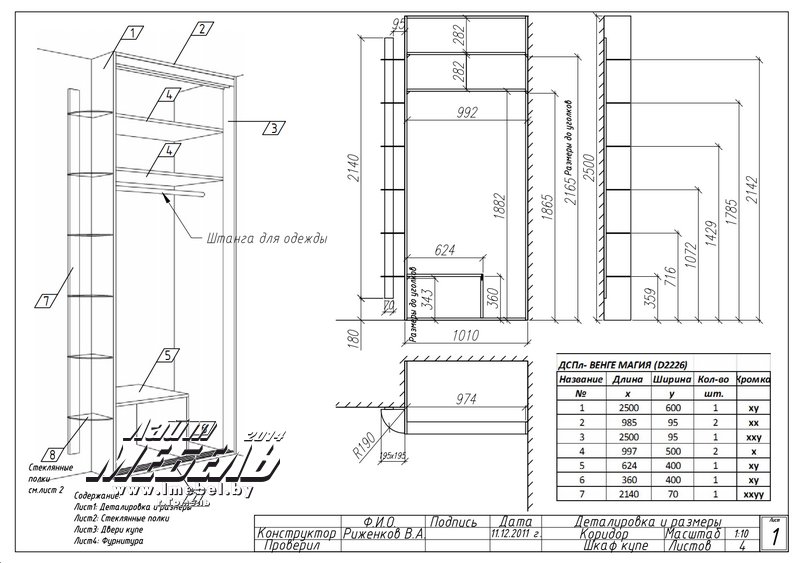 Шкаф-Купе 1,4 м. Встроенного типа. Боковые полки стеклянные. Глубина шкафа-купе 60 см. Описание изделия: