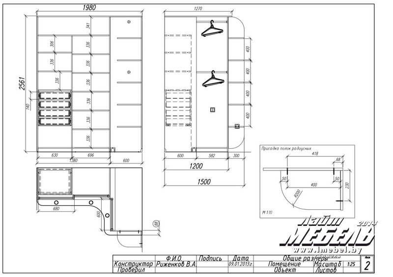 Шкаф-Купе угловой 2 х 1,5 м. Встроенного типа. Боковые полки 30 см. Глубина шкафа-купе 60 см. Описание изделия:
